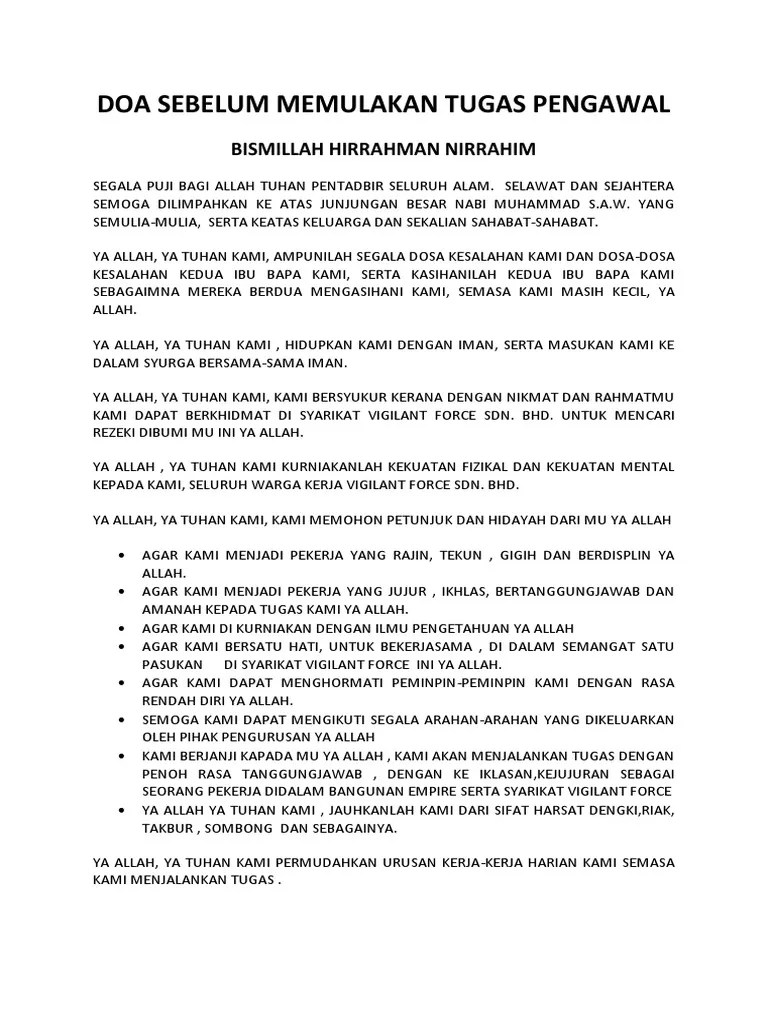 Pada hari ini, kami menadah tangan . Doa sebelum dan sesudah membuat kerja. Kami kemukakan di bawah enam doa untuk anda baca sebelum memulakan kerja harian anda dan dengan itu memperoleh bimbingan rohani dan banyak . Doa sebelum bekerja merupakan hal penting agar pekerjaan yang dikerjakan mendapat bantuan dari allah swt. Dengan nama allah yang maha pemurah lagi maha mengasihi. Doa ketika memulakan kerja awal pagi dan habis kerja berserta tips agar dipermudahkan rezeki setiap pekerjaan dan perniagaan dalam kehidupan seharian. Doa sebelum memulakan kerja awal pagi 440 ptg the akhyaar 6 comments. Doa sebelum memulakan tugas tafsirnya : Oleh karena itu, jangan sampai lupa . Doa harian sebelum memulakan pekerjaan . اَللّهُمَّ اِنِّيْ اَسْأَلُكَ نَعِيْمًا مُقِيْمًا, اَلَّذِيْ لاَ يَحُوْلُ وَلاَ يَزُوْلُ. Cara terbaik adalah dengan mengamalkan doa sebelum memulakan sesuatu pekerjaan. Tak kisahlah kerja di office ataupun sebagai petani .